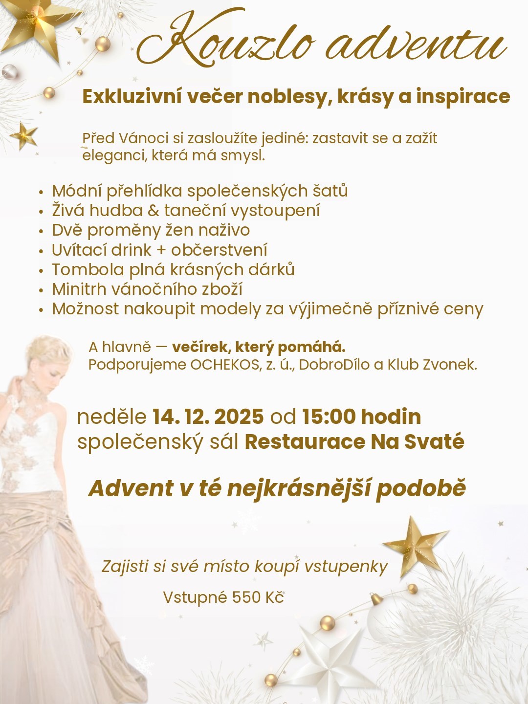 Salon v růžích Vás srdečně zve na předvánoční setkání plné elegance, radosti a dobré energie. Zpomalte, nadechněte se a vstupte do světa, kde se elegance potkává s radostí a dobrým skutkem.
