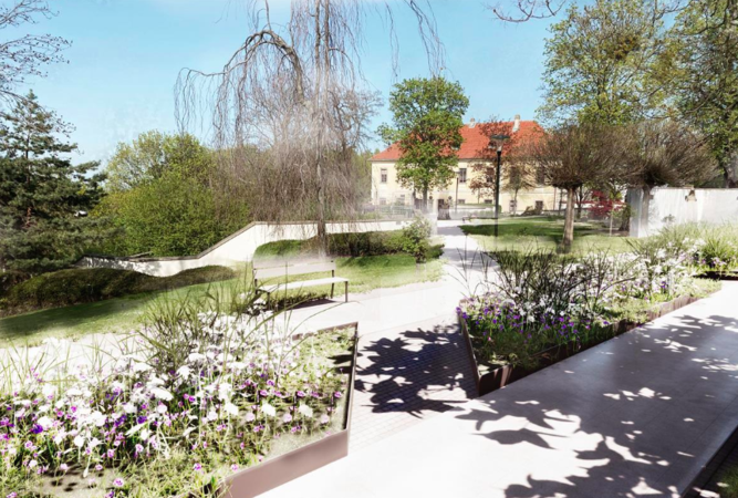 Celkový koncept a založení zahrady zůstane beze změn. Budou ochráněny a zachovány všechny stromy, mírně rozšířeny květinové záhony a přibydou lavičky.